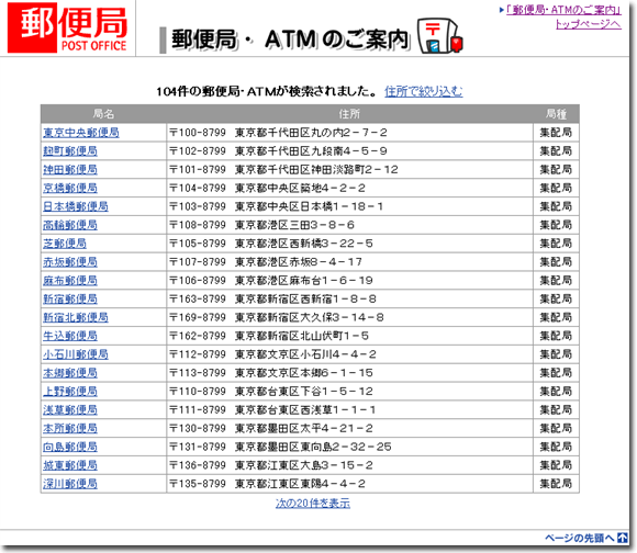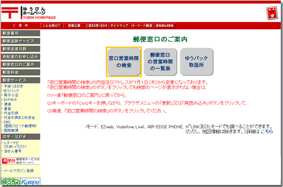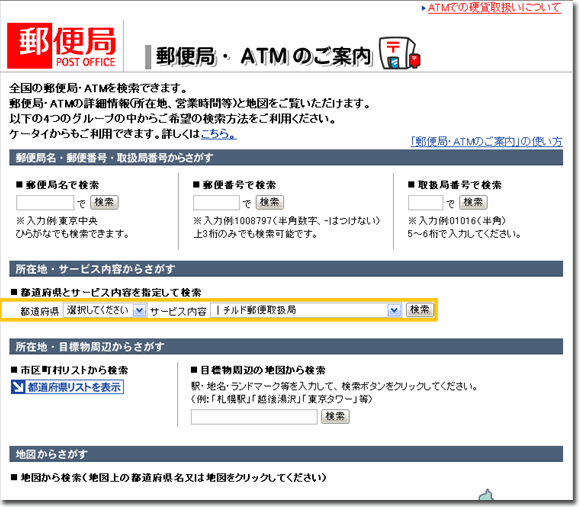 ■■ 日本郵政公社の「チルド」取扱い郵便局の検索方法
